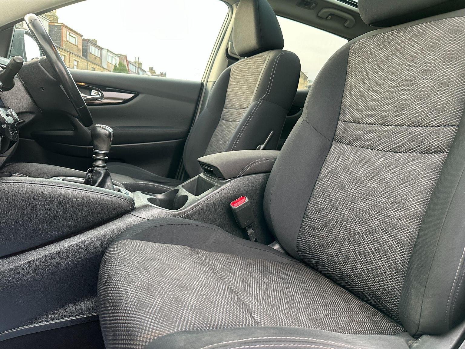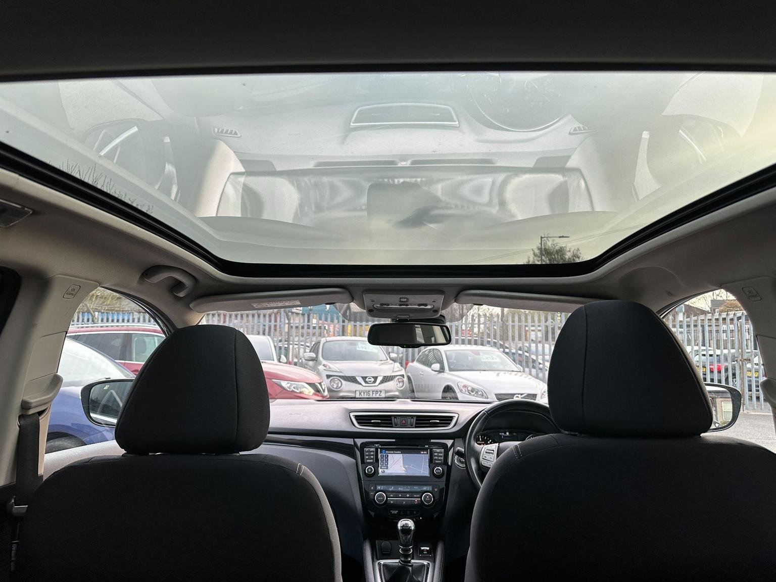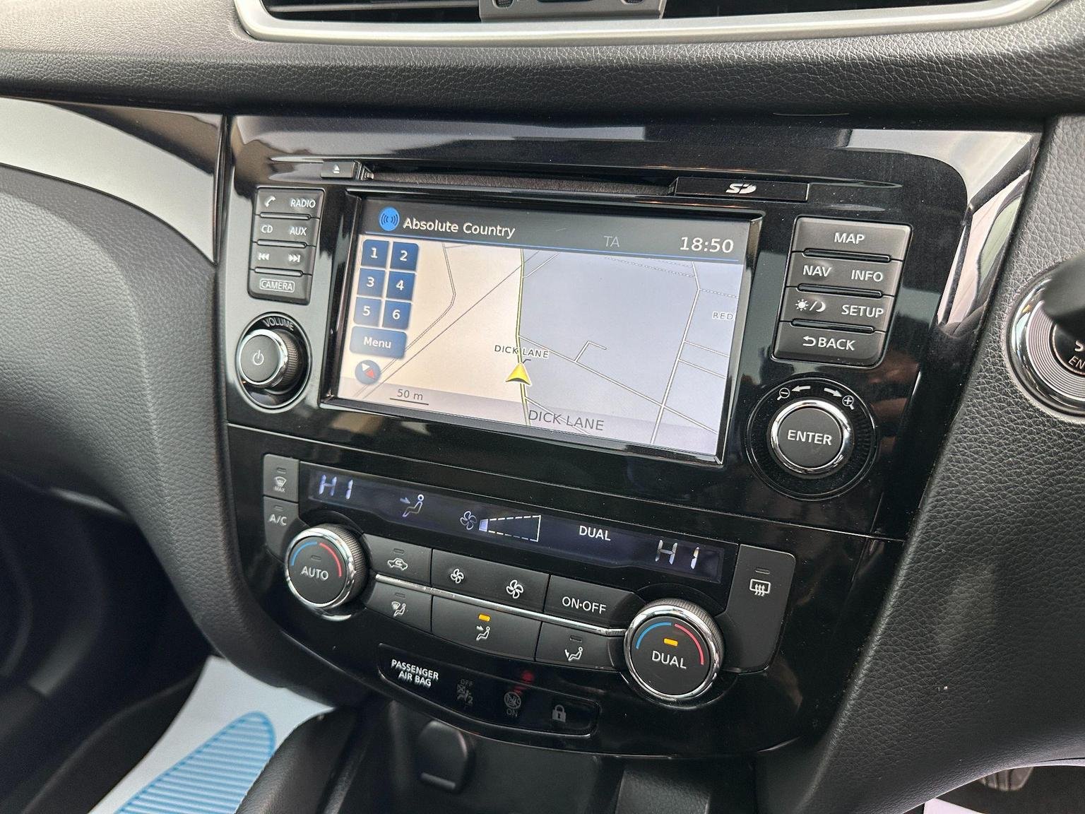 Auto Dimming Rear View Mirror, Auto Rain Sensing Wipers, Black Honeycomb Front Grille, Body Coloured Handles, Brake Assist, Bumpers - Body Coloured, Chrome Glass Surround, Climate Control - Dual Zone, Cruise Control with Speed Limiter, DAB Radio, Door Mirrors - Body Coloured, Door Mirrors - Power Fold and Heated, Driver Seat Height Adjustment, EBD - Electronic Brakeforce Distribution, ESP - Electronic Stability Programme, Electric Speed-Sensitive Power Steering, Front Armrest, Front Collision Avoidance, Front Fog Lights, Front and Rear Electric Windows, Head Restraints - Active Front, Head Restraints - Rear, Headlights - Auto, Headlights - Auto High-Low Beam, Hill Start Assist, ISOFIX Childseat Anchorage Points - Middle Row Outer Seats, Immobiliser, Intelligent Key, Interior Ambient Lighting, LED Daytime Running Lights, Lane Departure Warning, Leather Gear Knob, Leather Steering Wheel, Luggage Board System, Lumbar Support, Panoramic Glass Roof, Parking Sensor - Front, Pollen Filter, Puncture Repair Kit, Push Start-Stop Button, Radio-CD, Rear Cupholder, Rear Door Child Locks, Rear Parking Sensor, Rear Privacy Glass, Rear View Camera, Satellite Navigation - Nissan Connect, Service Indicator, Smart Vision Pack, Speed-Sensitive Autolock Function, Steering Wheel Mounted Audio Controls, TPMS - Tyre Pressure Monitoring System, Telephone - Bluetooth Integration, Tilt and Telescopic Adjustable Steering Wheel, Touch Screen 7in, Traction Control, Traffic Sign Recognition, Trip Computer, USB Port, e-PKB - Electric Parking Brake, 17in Alloy Wheels - 5-Spoke in Silver, 6 Speakers, 60-40 Split Rear Folding Seats, ABS - Anti Lock Brakes, AUX-In Socket, Airbag - Driver, Airbag - Passenger, Airbags - Curtain, Airbags - Side, Alarm, Armrest - Rear
